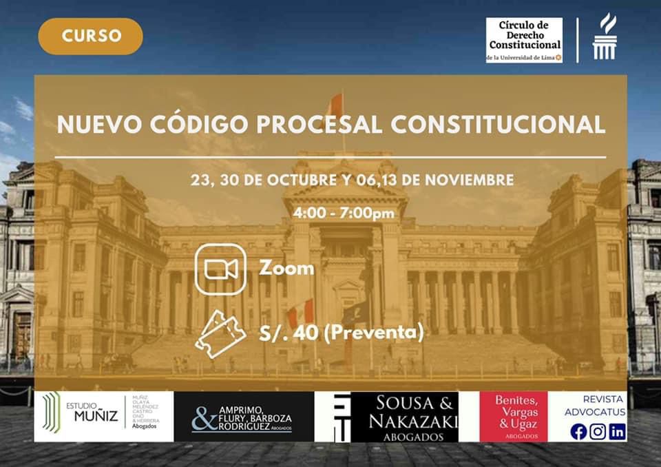 Nos complace anunciar que la Revista Advocatus está organizando el “Curso de Capacitación en el Nuevo Código Procesal Constitucional”.