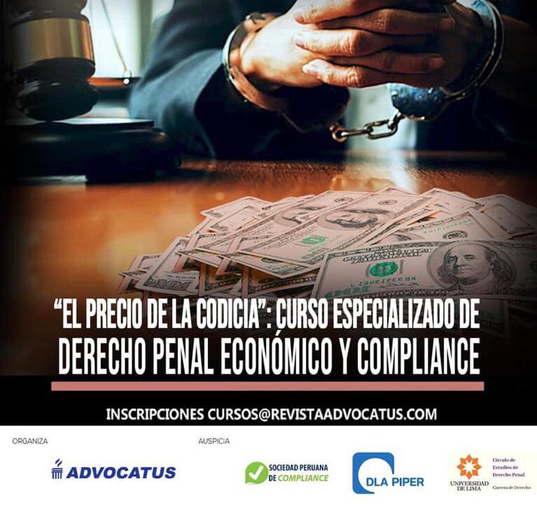 El 06 y 07 de noviembre del 2019 la Asociación Civil ADV Editores – ADVOCATUS, con el apoyo del estudio DLA Piper, la Sociedad Peruana de Compliance y el Circulo de estudios de Penal de la Universidad de Lima, lanzaron un curso especializado sobre derecho penal económico y compliance. Dicho curso interdisciplinario tuvo acogida entre especialistas y estudiantes universitarios teniendo gran relevancia en el mundo jurídico debido al tema a tratar.