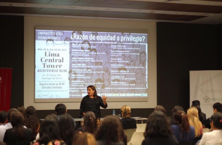 Este evento se realizó los días 25 y 26 de abril del 2018 en las instalaciones del Auditorio “SUM” del Lima Central Tower. El evento englobó diversas ponencias y mesas redondas como “La necesidad del tipo penal del Feminicidio en el Perú”, “La diferenciación positiva e implementación de cuotas de género”, “Aplicación de la jurisprudencia internacional a las políticas públicas en pro del trato equitativo”, “¿Es la brecha salarial una realidad?”, “Viabilidad de las políticas públicas en promoción de la igualdad”, “Rompiendo barreras para la integración económica de las mujeres” y demás.