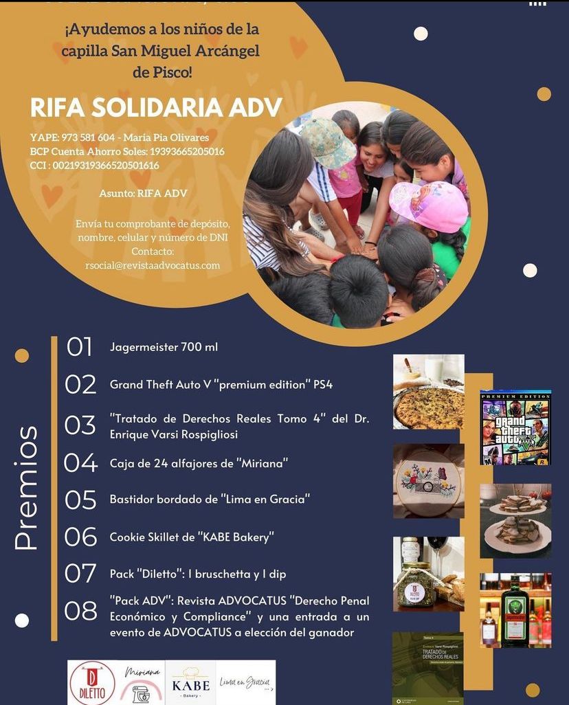 #RifaSolidariaADV Como es de costumbre, este año Advocatus organizará la actividad Navidad con ADV. ¡Ayudemos a los niños de la Capilla San Miguel Arcángel de Pisco con esta rifa, cualquiera …